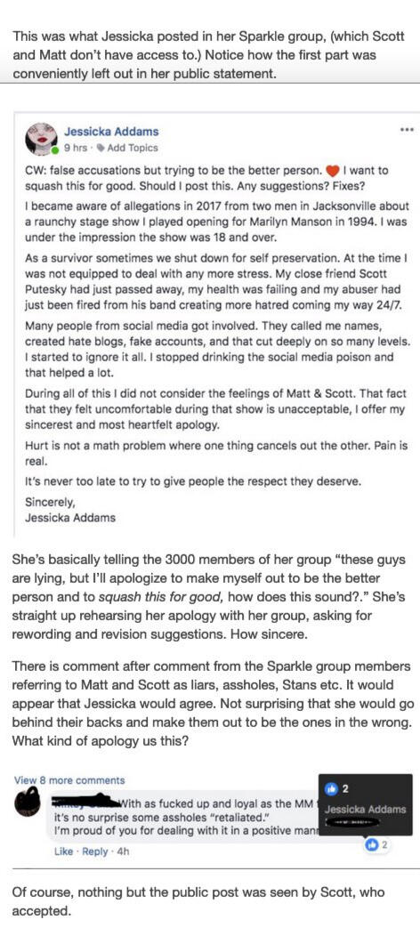 The Lolcow link below has some strong language. I am citing it as a source for some of Jessicka's documented crappy behavior, but read at your own risk. I apologize for anyone who had seen this before the CW and was offended. I had a Trigger Warning at the top of the header that shows up on every page and thought that was enough to cover it.
