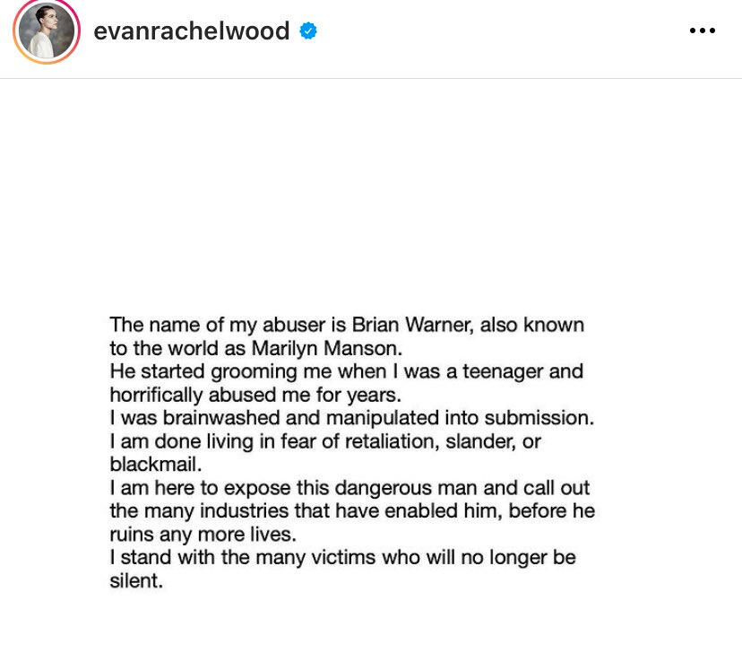 Manson and Evan Rachel Wood had a very public relationship. His previous wife, Dita Von Teese, left on Christmas Eve because she could no longer tolerate his abuse. Rose McGowan also survived this man.